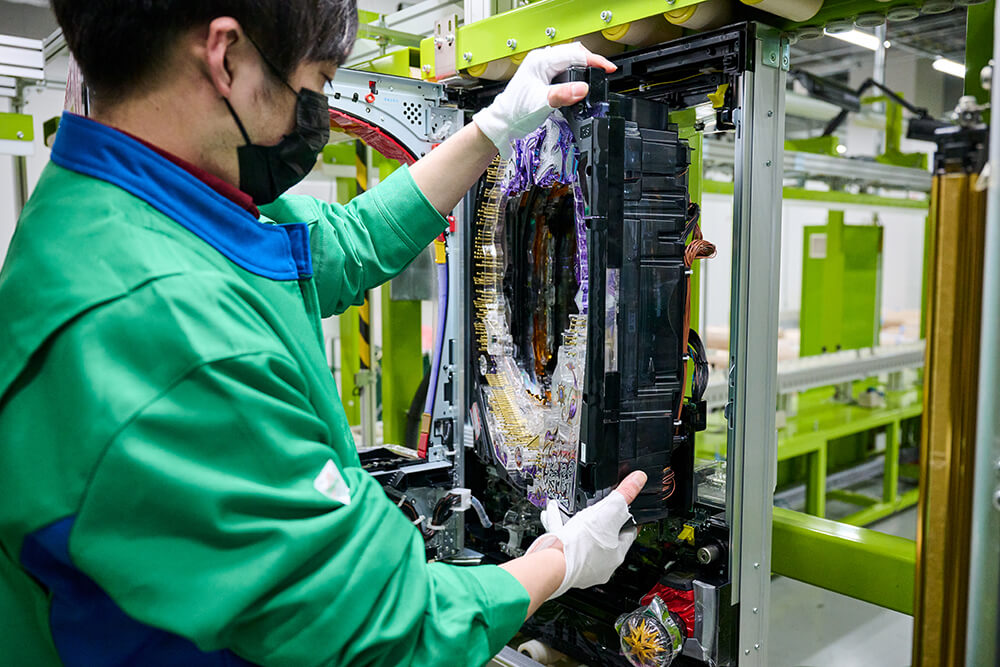 - After checking the operation of the product with the board attached, a final inspection is conducted and the parts information is registered