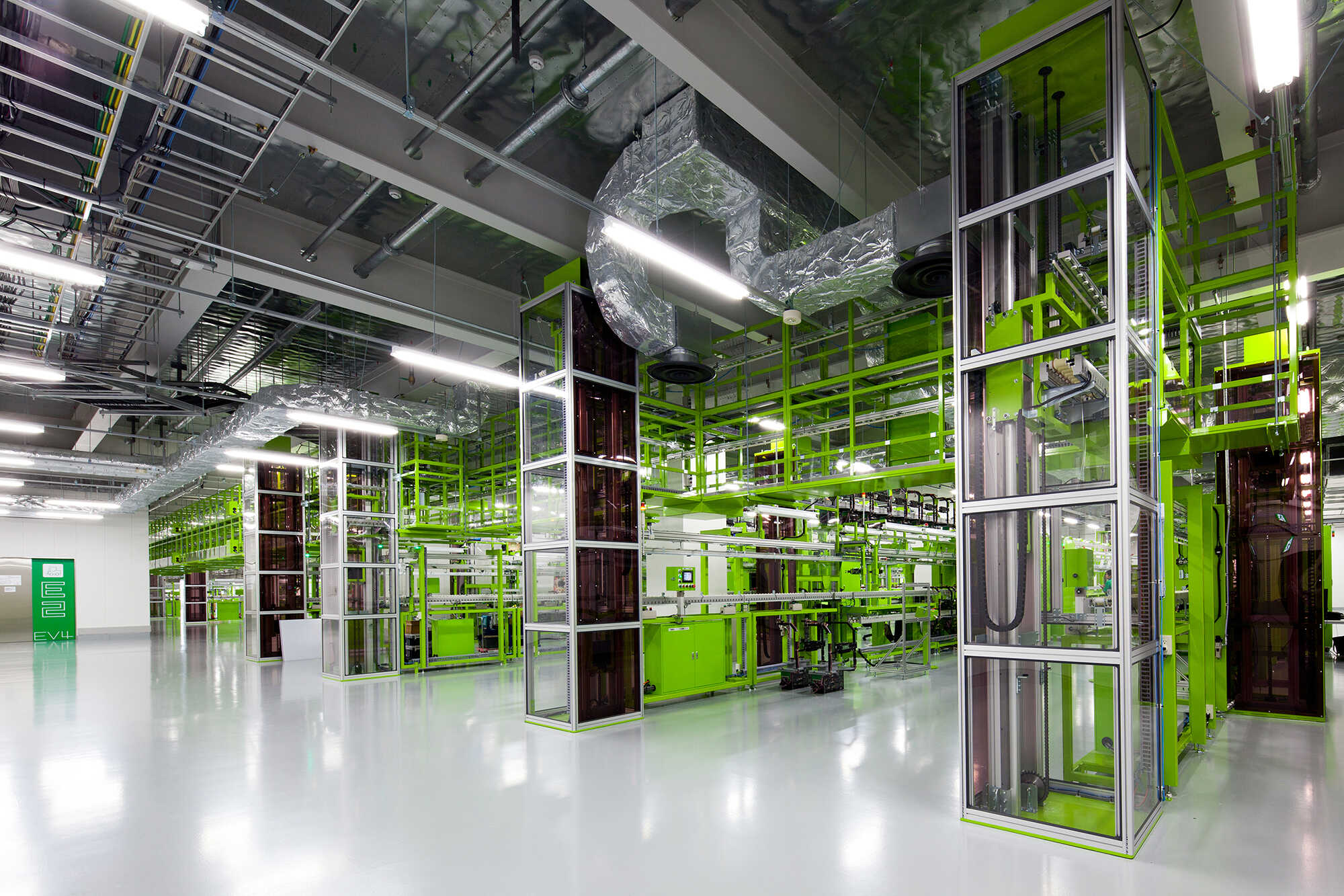 サミー川越工場は生産力強化、生産能力拡大を目的として2012年に竣工されました。現在はスマートファクトリーを目指し、自動化を推進しながら遊技機の製造を行っています。