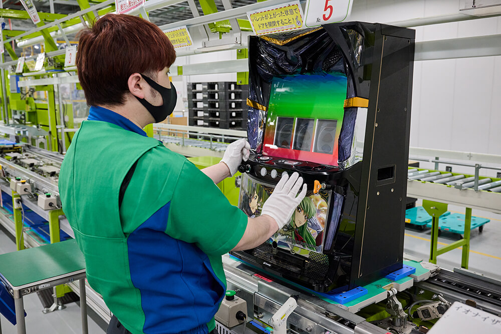 - 組立が完了した製品のリールや液晶、その他部品の動作確認をします。その後出荷ラインへ運ばれます