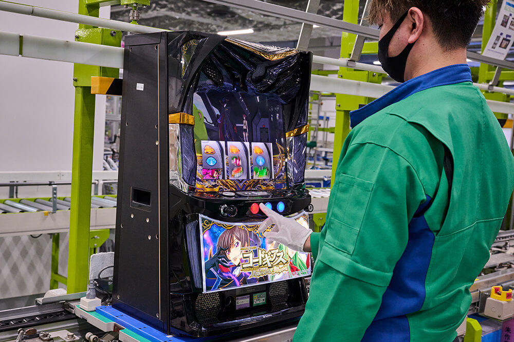 動作検査に合格した製品に主基板を取り付け、最終検査を行います