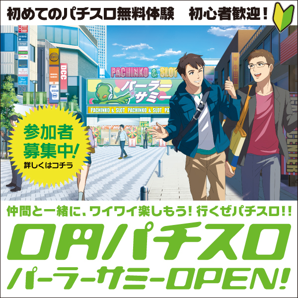 サミー株式会社(本社:東京都豊島区 代表取締役社長 COO:里見 治紀 )は、この度パチスロ初心者・未経験者を対象にした〝タッチ&トライ体験型イベント〟「0円パチスロ パーラーサミー」を平成29年3月18日(土)サミー大阪支店、3月25日(土)サミー東京支店にて開店いたします。