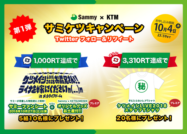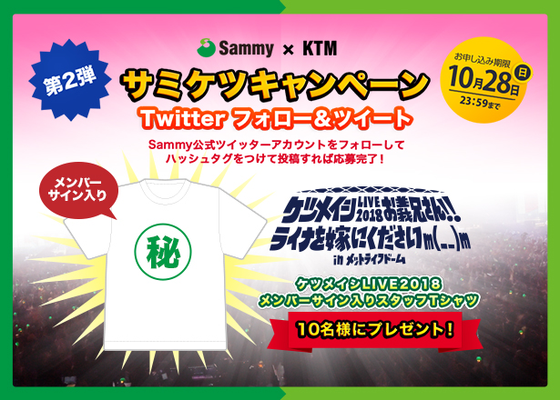 サミー公式Twitterアカウントをフォローして、指定のハッシュタグ「#サミケツキャンペーン」と「#サミーファン」をつけて投稿!